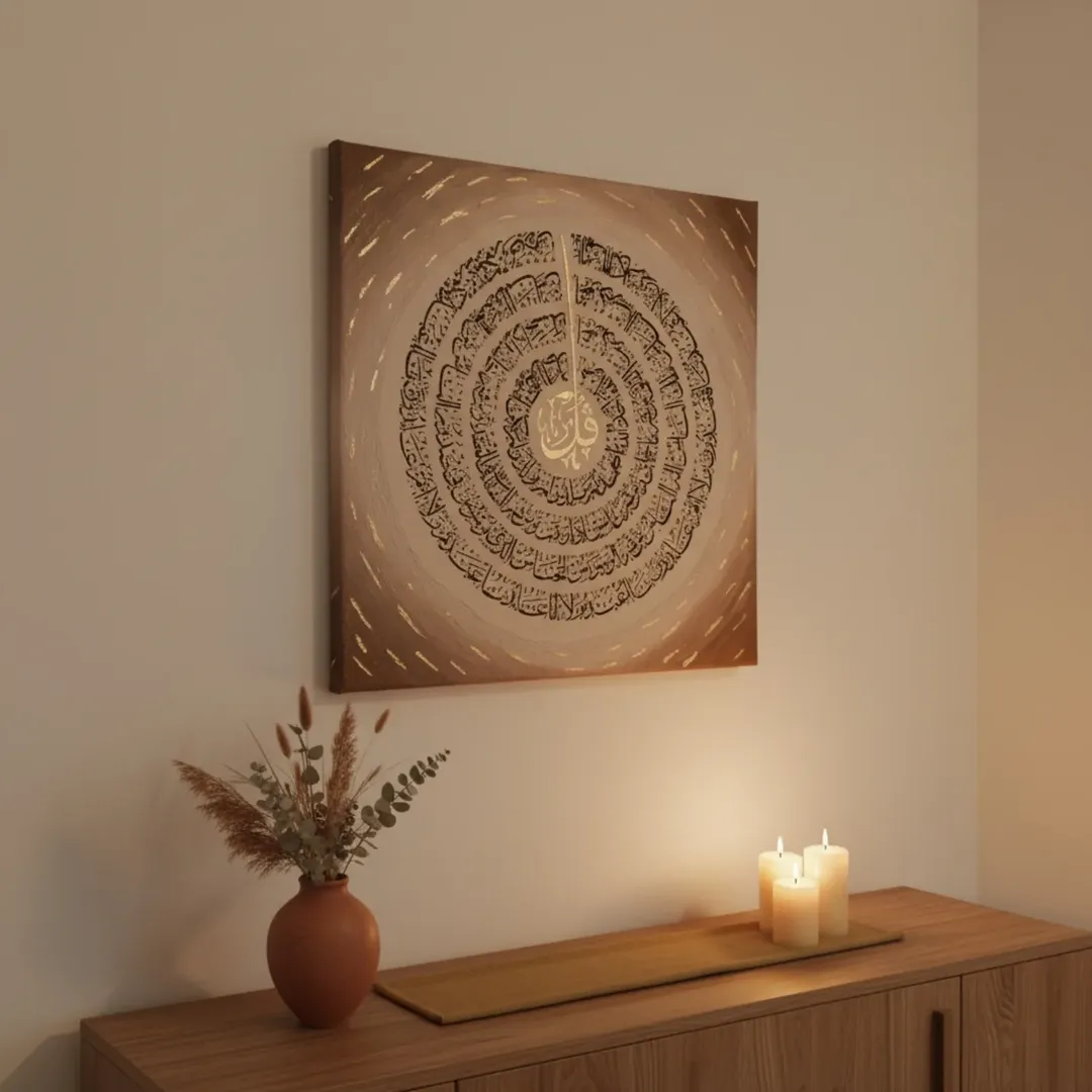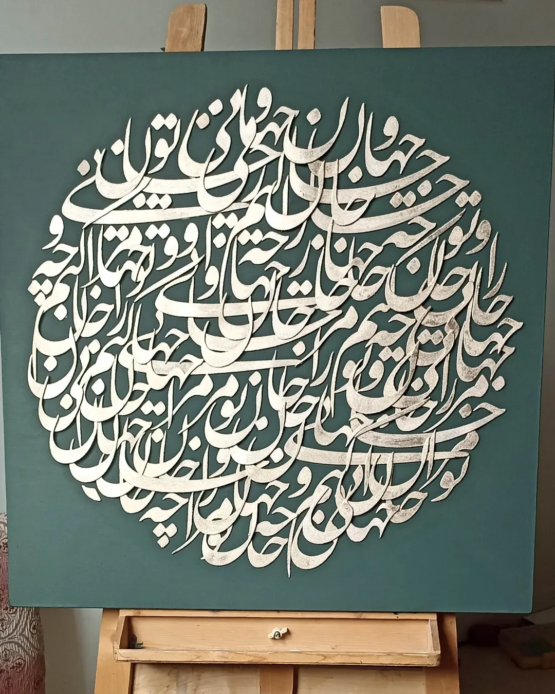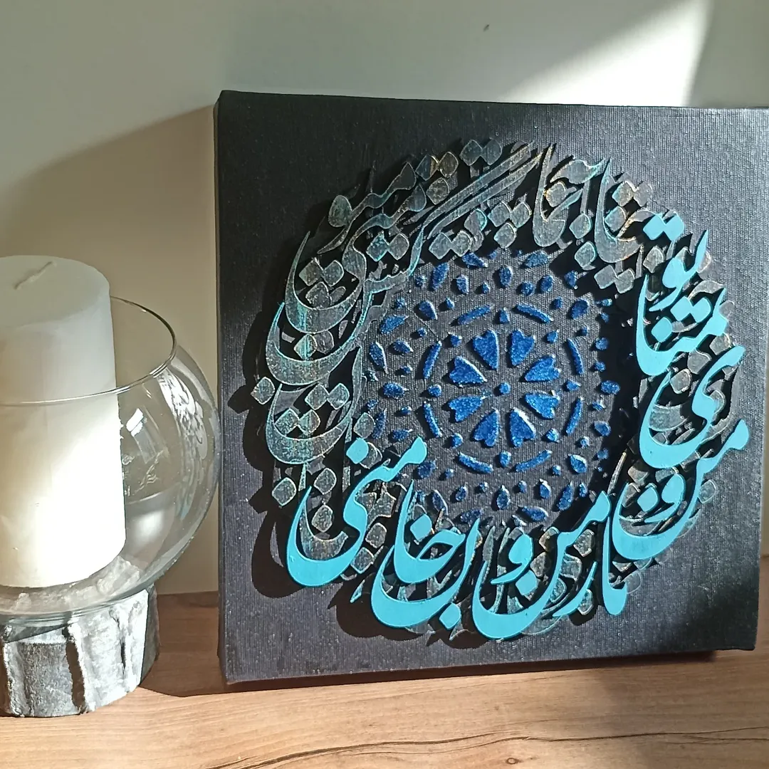تابلو 'وان یکاد' با رنگهای فیروزهای و تاچ طلایی