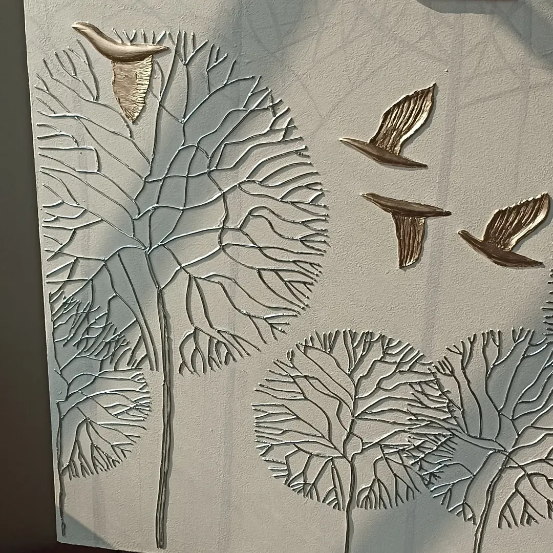 تابلو دکوراتیو با خمیر برجسته کار شده روی بوم 70*100 با خمیر برجسته سازی و رنگ اکرولیک و ورق طلای مایع
